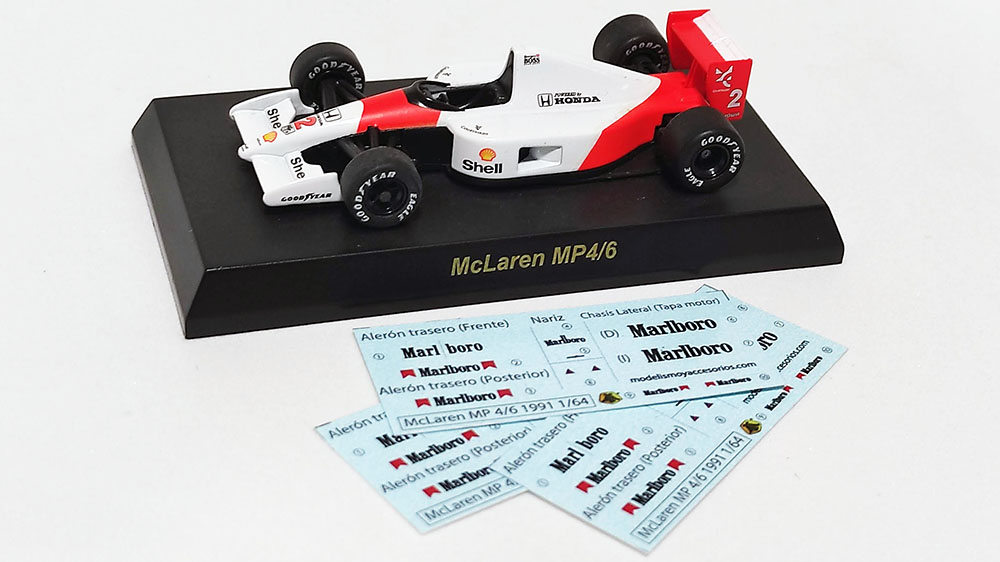 - McLaren MP 4/6 (1991). Calcas deslizables al agua (impresión en digital sobre fondo transparente) MYA (MEX) D0308