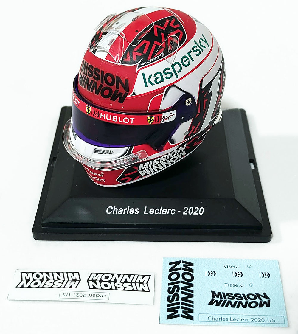 - Charles Leclerc (Ferrari, 2020). Calcas deslizables al agua (impresión en digital sobre fondo transparente/blanco) MYA (MEX) D0282