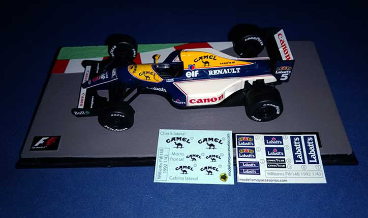 WILLIAMS FW14B, F1 (1992, FASC # 12 Panini MEX). Calcas deslizables al agua (impresión digital sobre fondo transparente y sobre fondo blanco) MYA (MEX) D0195