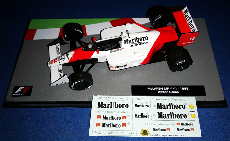 McLAREN MP 4/4, F1 (1988, FASC # 1 Panini MEX). Calcas deslizables al agua (impresión digital sobre fondo transparente) MYA (MEX) D0191