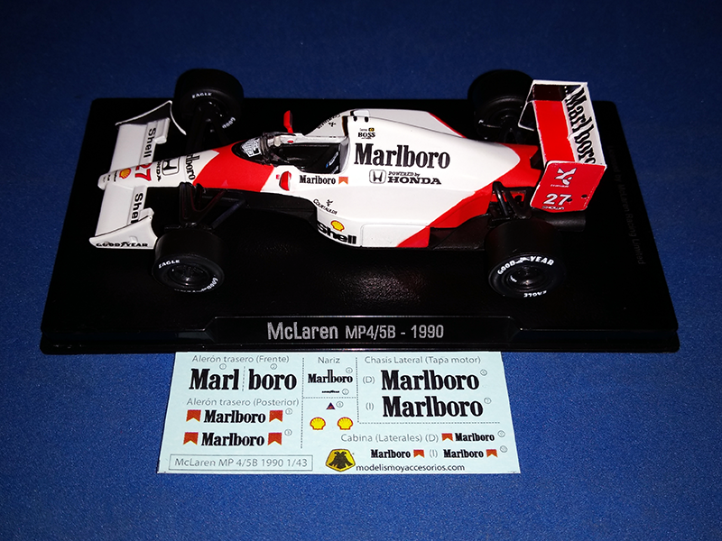 McLAREN MP 4/5B, F1 (1990, FASC # 63 Panini MEX). Calcas deslizables al agua (impresión digital sobre fondo transparente) MYA (MEX) D0194