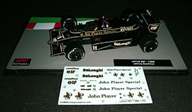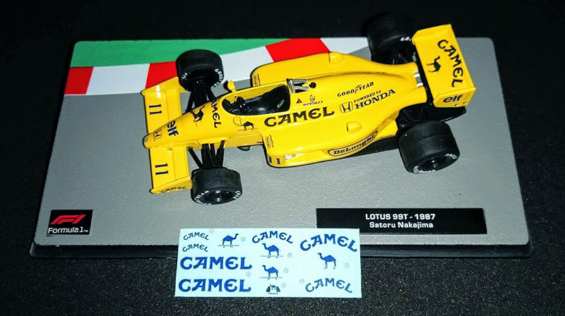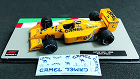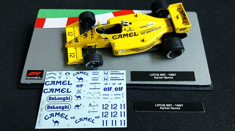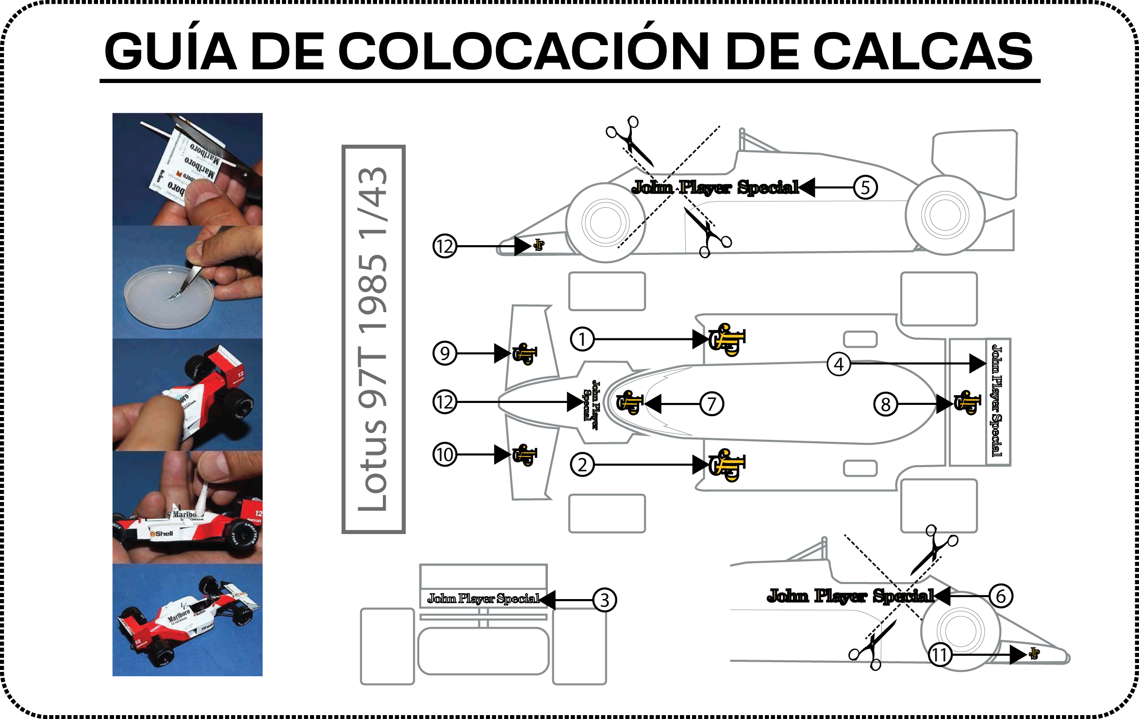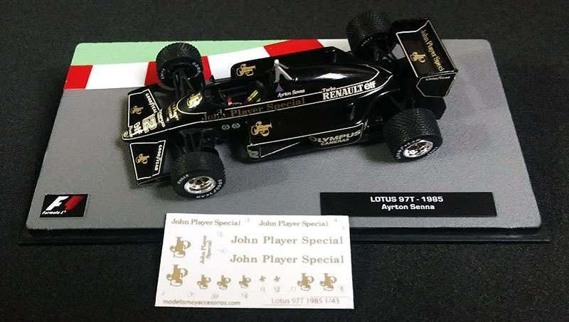 LOTUS 99T, F1 (1987, FASC # 80 Panini MEX). Calcas deslizables al agua, conversión al auto de Senna (impresión digital sobre fondo transparente) MYA (MEX) D0204
