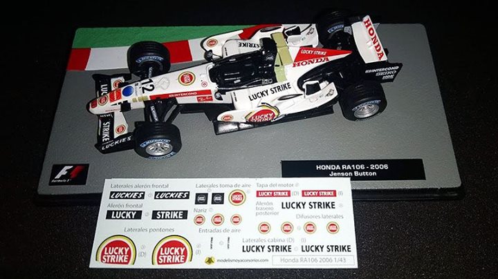 HONDA RA106 (2006, FASC # 67 Panini MEX), F1. Calcas deslizables al agua (impresión digital sobre fondo blanco) MYA (MEX) D0214