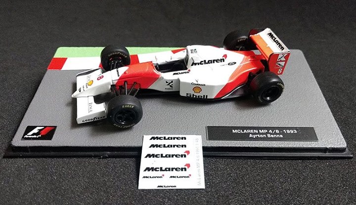 McLAREN MP 4/8, F1 (1993, FASC # 21 Panini MEX). Calcas deslizables al agua (impresión digital sobre fondo transparente) MYA (MEX) D0196