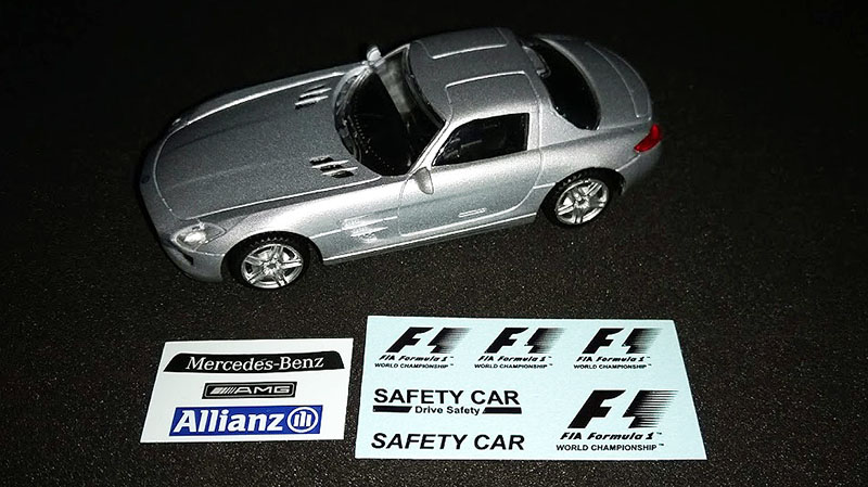SAFETY CAR F1, MERCEDES AMG SL (2011). Calcas deslizables al agua (impresión digital sobre fondo transparente/blanco) MYA (MEX) D0225