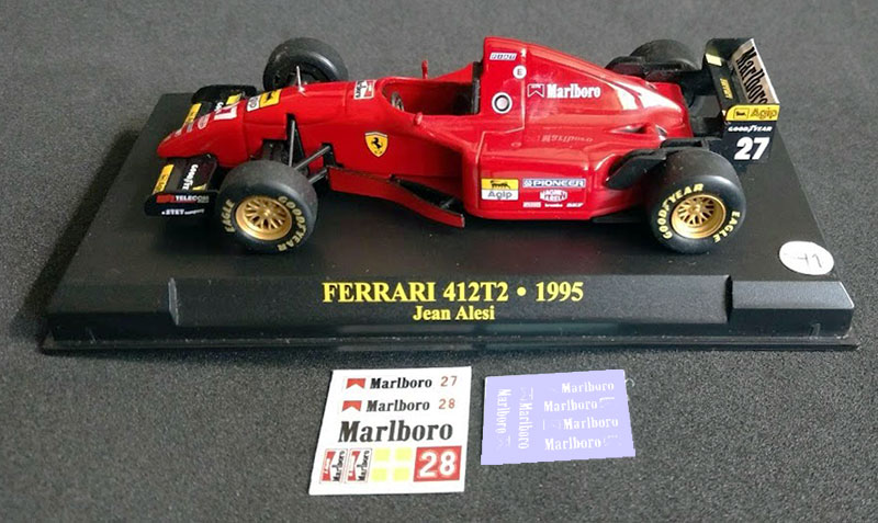 - FERRARI 412 T2, F1 (1995). Calcas deslizables al agua (impresión digital sobre fondo blanco/serigrafía sobre fondo transparente) MYA (MEX) D0231