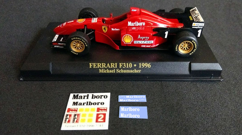 FERRARI F310 (1996). Calcas deslizables al agua (impresión digital/serigrafía sobre fondo transparente) MYA (MEX) D0233