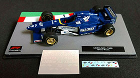 LIGIER JS43, F1 (1996, FASC # 98 Panini, MEX). Calcas deslizables al agua (impresión serigrafía/digital sobre fondo transparente) MYA (MEX) D0235