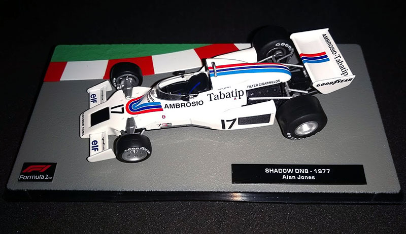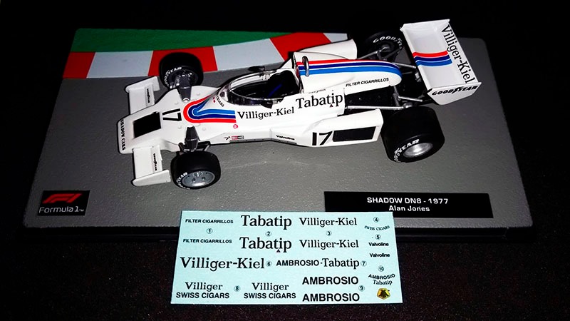 SHADOW DN8, F1 (1977, FASC # 106 Panini MEX). Calcas deslizables al agua (impresión digital sobre fondo transparente) MYA (MEX) D0243