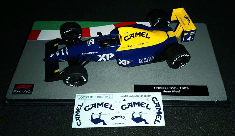 TYRRELL 018, F1 (1989, FASC # 107 Panini MEX). Calcas deslizables al agua (impresión digital sobre fondo transparente) MYA (MEX) D0244