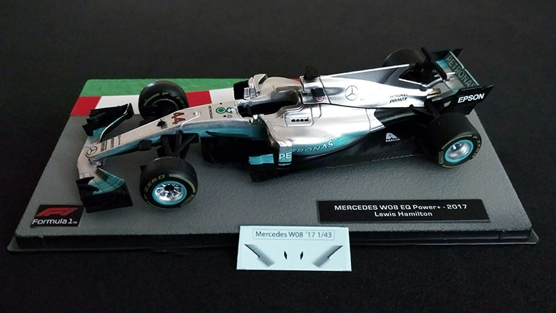 MERCEDES W08 Early Season Sharkfin, F1 (2017, FASC # 117 Panini MEX). F1. Calcas deslizables al agua (impresión digital sobre fondo transparente) MYA (MEX) D0249