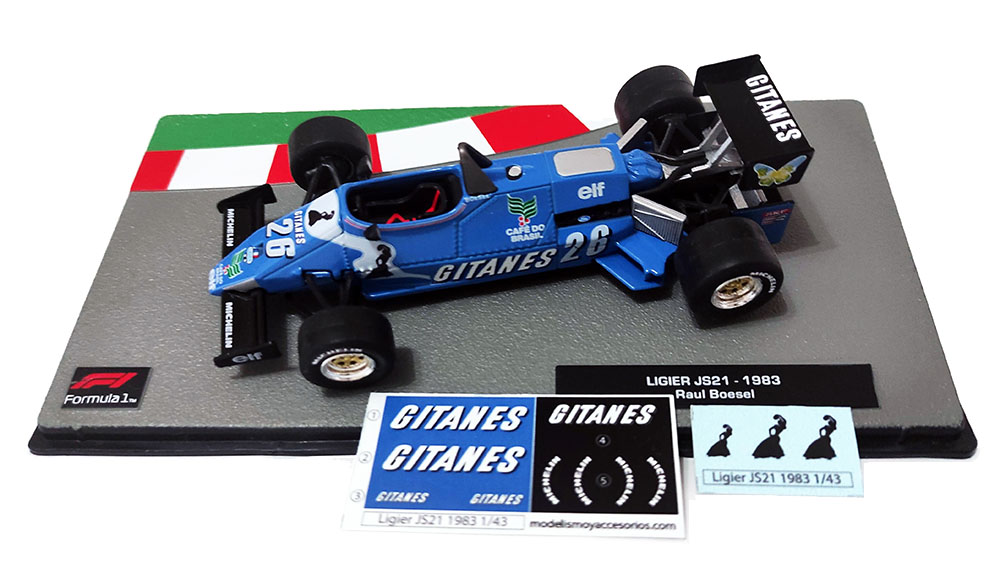 LIGIER JS21 (1983, FASC # 147 Panini, MEX), F1. Calcas deslizables al agua (impresión digital sobre fondo blanco/transparente) MYA (MEX) D0272