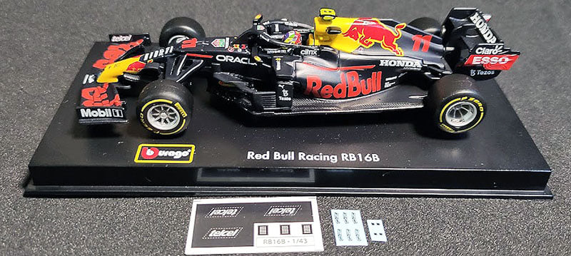 RED BULL RB16B (2021, para Signature Edition, Bburago), F1. Calcas deslizables al agua (impresión digital sobre fondo blanco y transparente). MYA (MEX) D0273