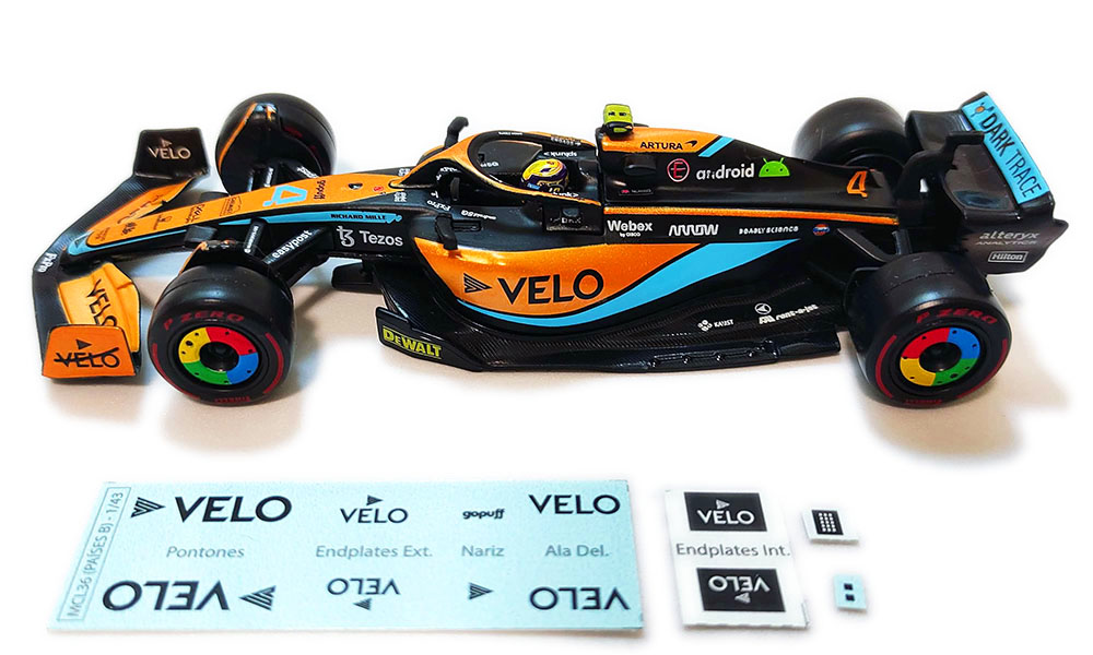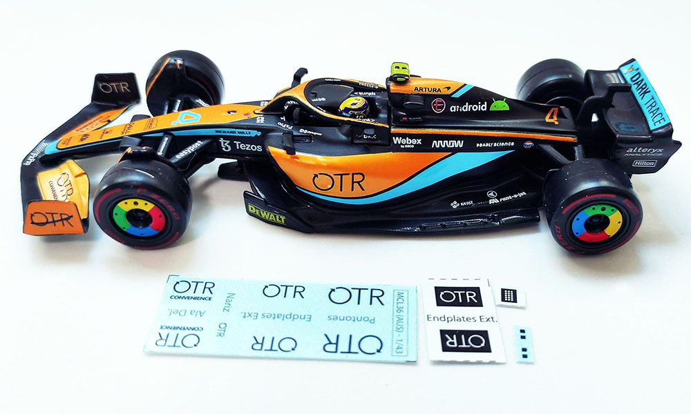 McLAREN MCL36, F1 (2022, GP PAíSES BAJOS). Calcas deslizables al agua (impresión digital sobre fondo blanco/transparente) MYA (MEX) D0285