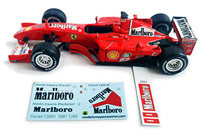 FERRARI F2001, F1 (2001). Calcas deslizables al agua (impresión digital HQ sobre fondo transparente/blanco) MYA (MEX) D0288