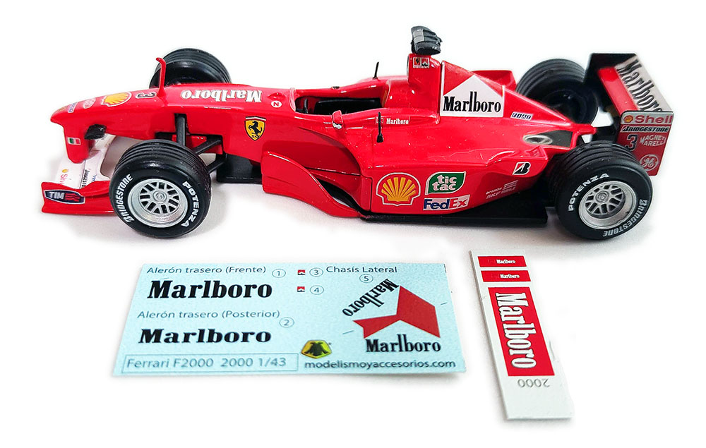 FERRARI F2000, F1 (2000). Calcas deslizables al agua (impresión digital sobre fondo transparente/blanco) MYA (MEX) D0296