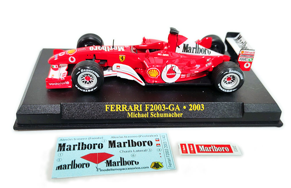 FERRARI F2003-GA, F1 (2003). Calcas deslizables al agua (impresión digital sobre fondo transparente/blanco) MYA (MEX) D0295